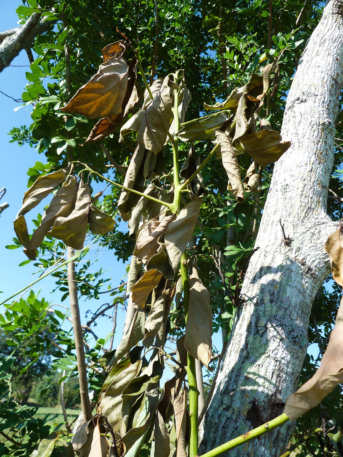 Spread: One major way that the redbay ambrosia beetle and laurel wilt fungus will spread quickly out of the southeast USA is via the movement of wood that is infested with beetles (larvae or adults). Consequently, redbay and other host woody forest species from infested areas should not be moved or sold as firewood. Tree trimmings, BBQ smoke-wood, and mulch all have the potential to move the beetle and the fungus into new areas. Efforts should be made to reduce the likelihood that the beetle and the fungus will be introduced again into new areas in wooden packing materials originating from the home range of these pests in southeast Asia.