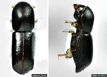 The Situation:In 2002, a non-native insect, the redbay ambrosia beetle, Xyleborus glabratus (Coleoptera: Scolytidae), was first detected in the United States near Port Wentworth, Georgia. The beetle was likely introduced in untreated wooden packing material, such as crates and pallets, imported through the shipment of goods from its native range in southeast Asia (e.g., India, Japan, Myanmar, and Taiwan). Adult beetles are small, 2 mm long, slender, cylindrical, and brown-black in color. The larvae are white, legless grubs