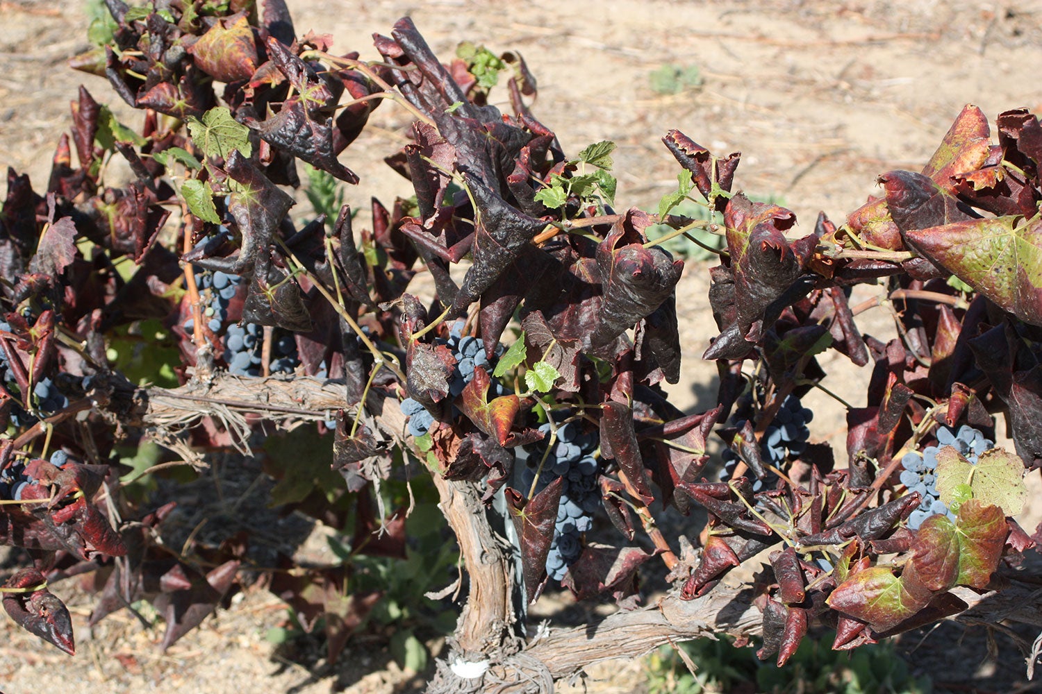 Damage: Vine mealybug, even more so than other mealybugs, produces copious amounts of honeydew that causes sooty mold damage. High densities of the insect lead to decreased plant vigor, defoliation, and the insects themselves may be contaminants of grape clusters. However, because VMB is an efficient vector of grapevine leafroll associated viruses (GLRaV) it can cause damage even at relatively low densities. Effects of GLRaV infection differ among grape varietals. For the most susceptible varietals infection causes progressive reddening of leaves, curling of leaf margins, decreased plant vigor, and defoliation. Ultimately this delays fruit maturity and reduces berry quality and quantity at harvest.