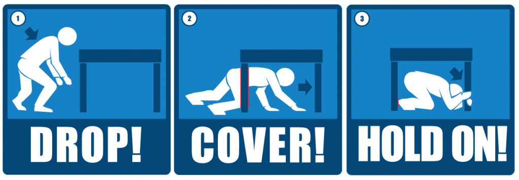 Held annually on the third Thursday of October, the ShakeOut International Day of Action is set for Thursday, October 15, 2020 at 10:15 AM. During the self-led drill, participants practice how to “Drop, Cover, and Hold On”.