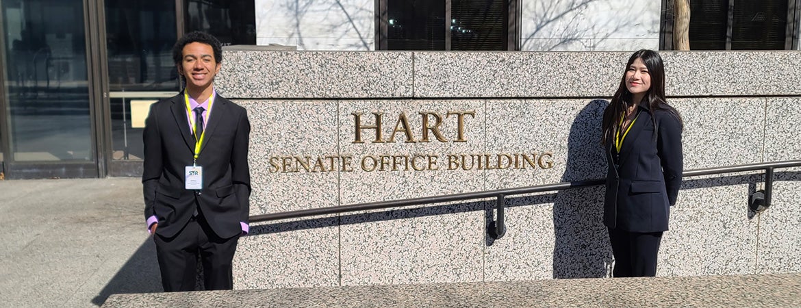 On the second day of their stay in D.C., Professor Dingwall, Anthony, and Vanessa visited the Hart Senate Office Building and met with staffers of California Senators Alex Padilla and Adam Schiff. “Ironically, we weren’t able to meet with the senators personally because they were at the confirmation hearing for Linda McMahon, who was being confirmed as the new Secretary of Education,” Professor Dingwall says. “Later that day, we went to the office of UCR alumnus Mark Takano, who represents California’s 39th District, which includes the city of Riverside. Each student was able to talk about their research, and their projects are relevant in advocating for undergraduate science research.”