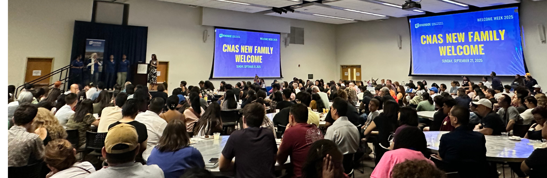 Part of Welcome Week 2025, CNAS Dean Peter Atkinson, Stephanie Dingwall, CNAS Divisional Dean of Student Academic Affairs, CNAS faculty and fellow classmates were on hand at HUB 302 to usher in the new students as they officially became part of the campus community and embark on their studies.