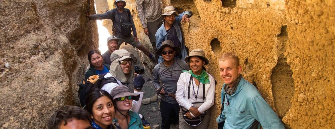 Students from UCR’s inaugural 2016 geology field course exploring a volcanic fissure in eastern California. (Nic Barth/UCR)
