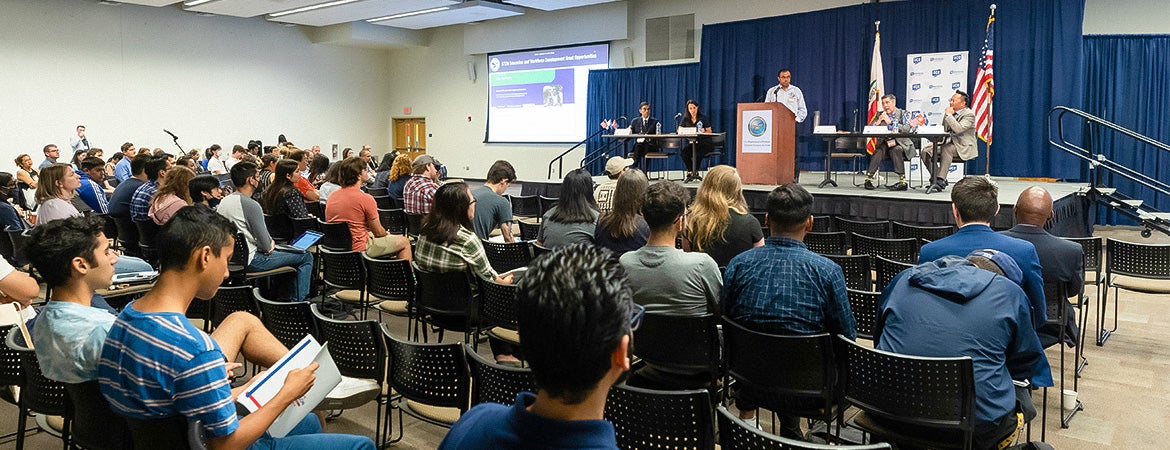 In his remarks, UCR Chancellor Kim Wilcox said UC Riverside lives at the intersection of research excellence, access, student success, and community service, and he underscored UCR’s mainstay as a magnet for diversity. “As both a Hispanic-Serving Institution (HSI) and Asian American and Native American Pacific Islander-Serving Institution (AANAPISI), we strive to find new pathways and opportunities for underrepresented students, especially in STEM disciplines,” he said. “We are grateful for the chance to partner with DOD in this mission.”