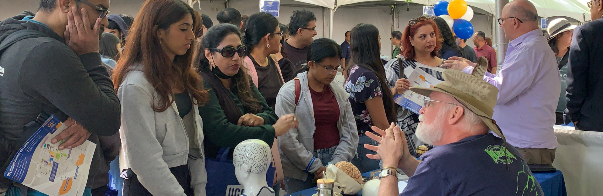 Another standout feature of Highlander Day was the College Fair, which featured booths dedicated to the CNAS Peer Mentors, Science Ambassadors, Learning Communities, and academic majors. All of the booths were staffed by CNAS faculty, advisors, and students, who chatted with admitted students and their families about life at UCR.