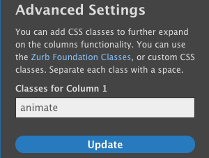 If you want to apply the "bubble up" effect that you see in the articles below, click on Layout > Configure Section" > Advanced Settings> Classes for Column xyz: type animate (and click the "update" button).