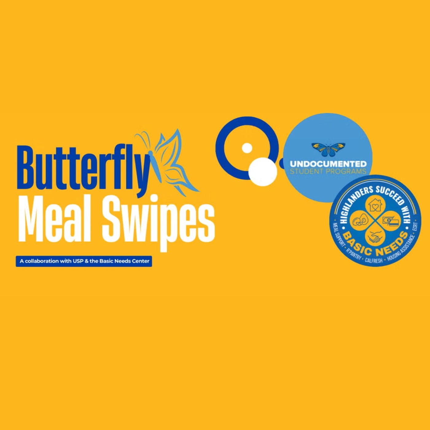 The Butterfly Meal Swipe (BMS) Program in collaboration with Undocumented Student Programs, promotes food security for undocumented students. Through this initiative, students receive 33 meal swipes each Winter and Spring quarter, loaded onto their R'Card for use at approved dining locations. The program also includes an informational session with a Basic Needs Intern, offering details about additional food resources on and off-campus. Applications are open each quarter for the 2024-2025 academic year.