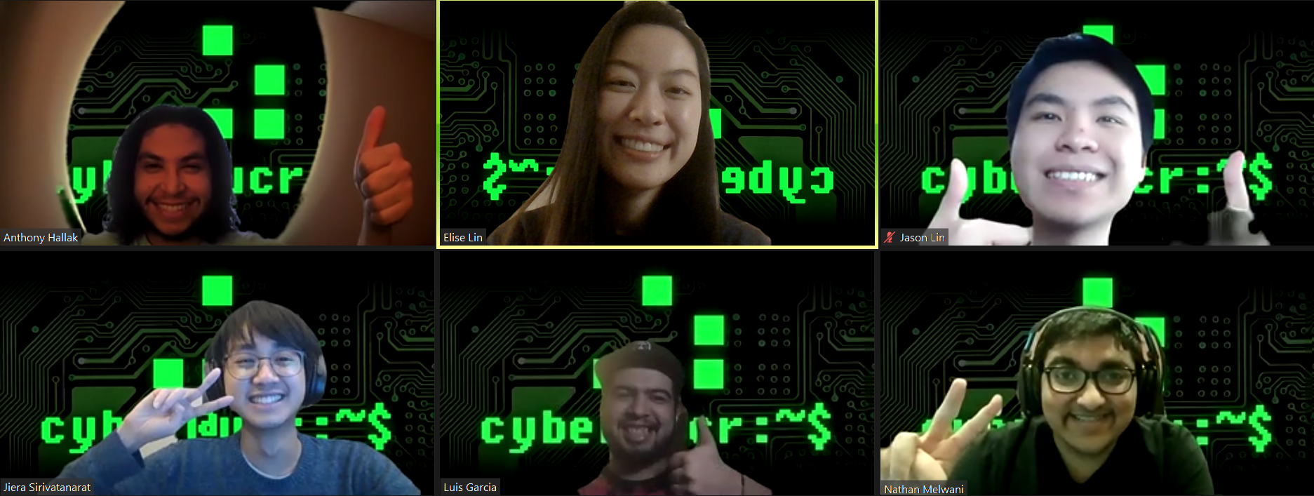 Captain: Anthony Hallak, Co-captain/Networks/Linux: Nathan Melwani, Windows: Jiera Sirivatanarat, Web: Kobe Braga, Injects: Kanin Liang, Linux: Adil Mohiuddin, Linux/Networks: Estela Ramirez