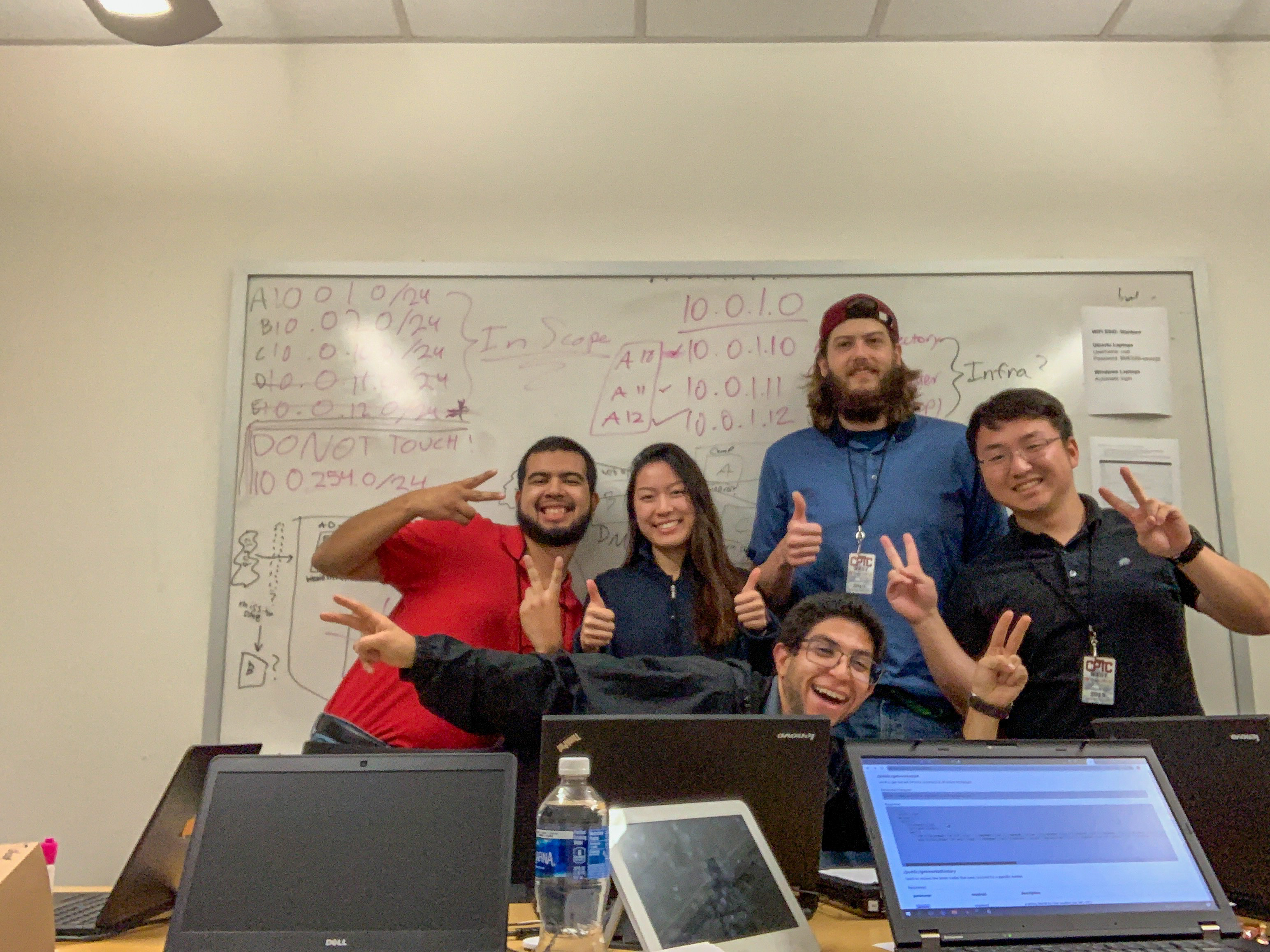 Captain: Bradley Evans, Linux: Calvin Ta, Windows: Ho-Ren Kang, Web: Bradd Carey, Networks: Alan Quach , Logs: Marco Tobon, Injects: Montana Esguerra, Floater: Kevin Dinh