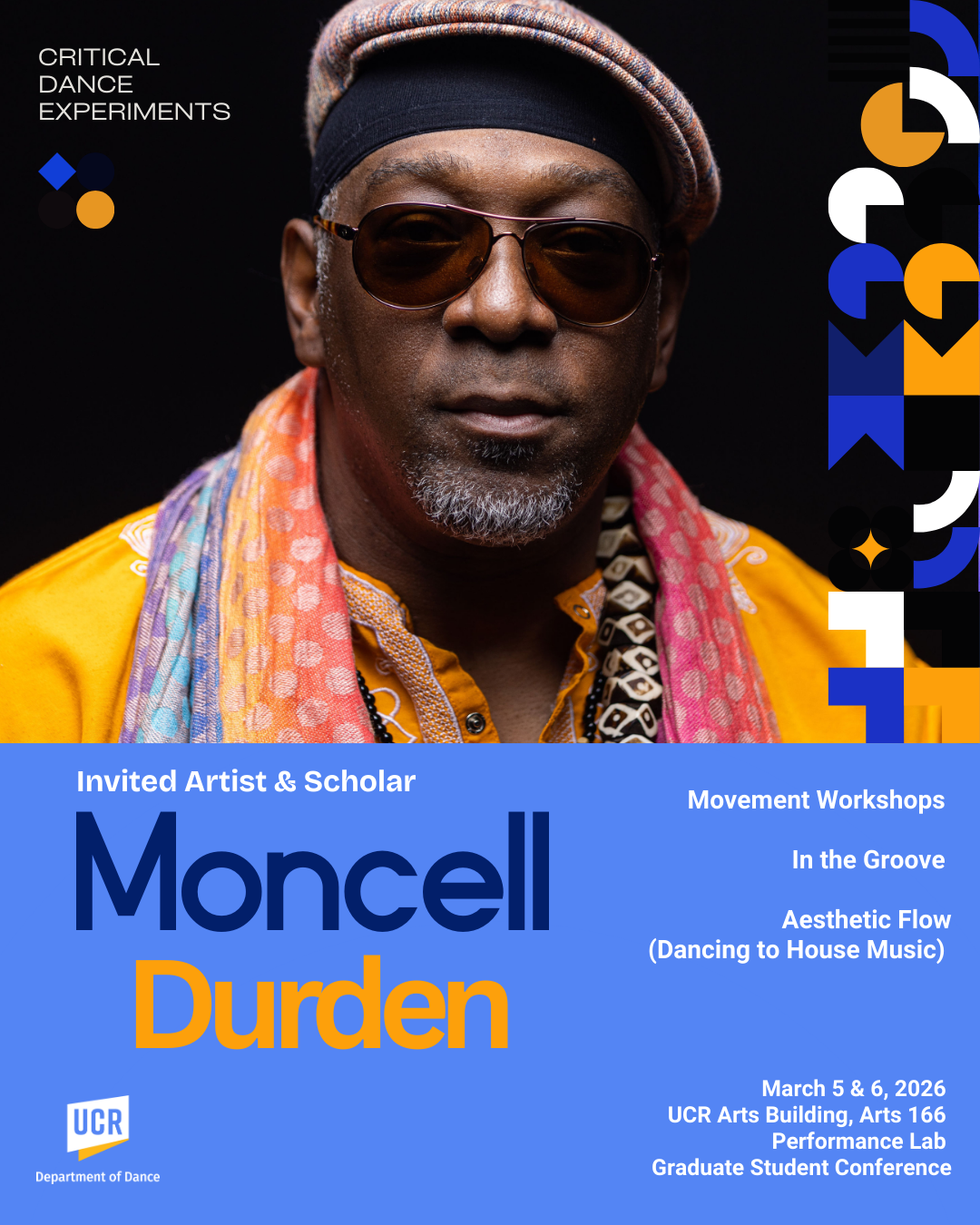 Professor Moncell Durden (USC Kaufman) will join us as the conference’s invited artist and scholar offering two intensive workshops entitled “In the Groove” & “Aesthetic Flow” connecting conceptual and movement aesthetics from Jazz to House and Hip Hop.