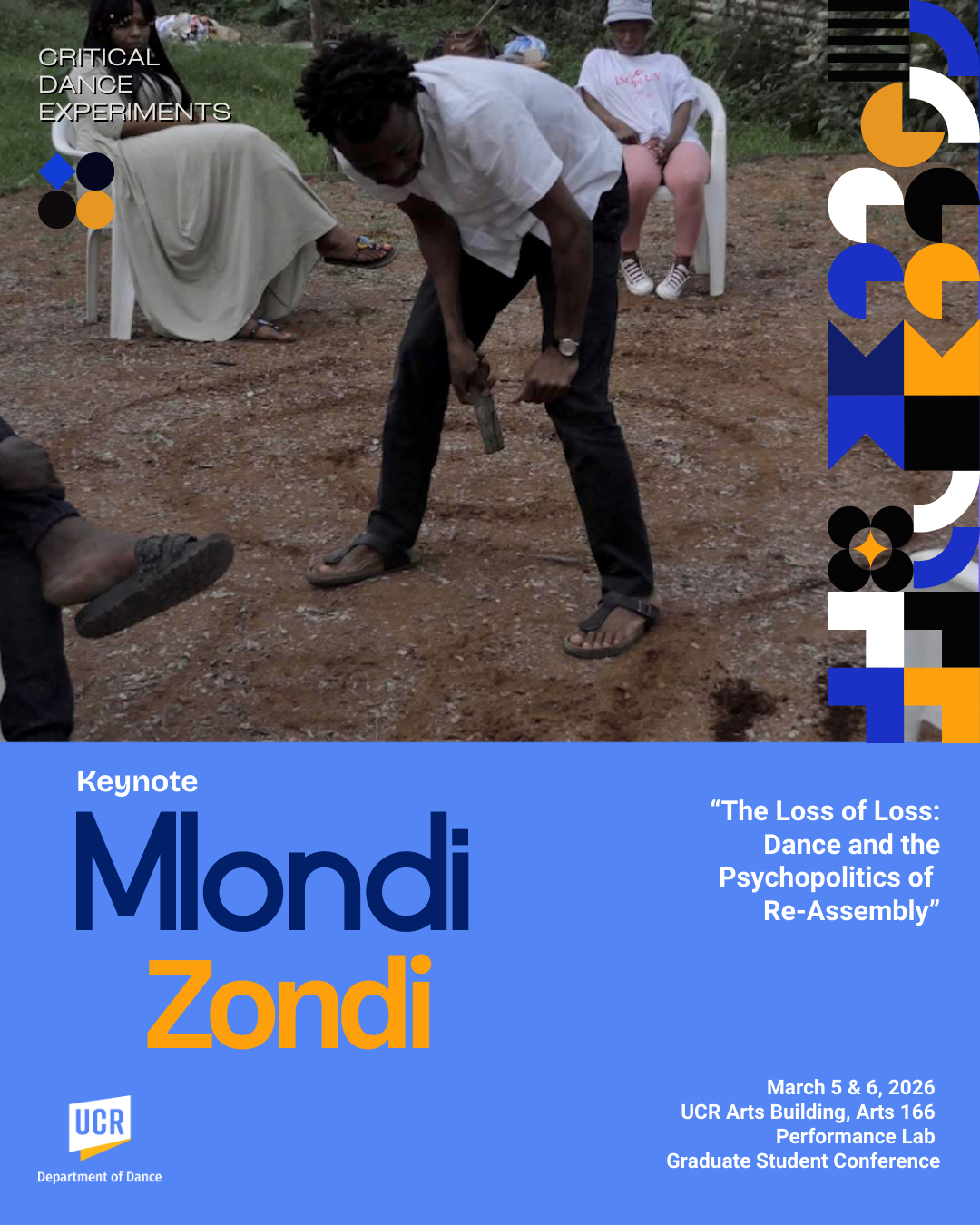 Dr. Mlondi Zondi (USC Dornsife) will join us as the conference’s keynote speaker, bringing his work into conversation with our graduate student community with the lecture “The Loss of Loss: Dance and the Psychopolitics of Re-Assembly”. Our keynote is part of a collaboration with the 2026 Current Topics in Dance Research Colloquium Series.
