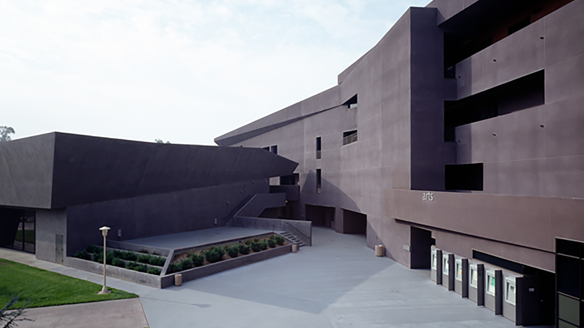 Built in 2001, the ARTS Building is home to UC Riverside’s growing visual and performing arts programs. Serving as a physical and symbolic gateway between the community and UCR campus, the building is home to the departments of Dance, Music, Theatre, Film, and Digital Production, and Art . It includes dance studios, music rehearsal and screening rooms, performance spaces, a photographic and film shooting studio, painting and sculpture studios, computer laboratories, and an arts library. The building’s design of stucco, brick, glass and steel structure, with angular features, ramps, stairs and ziggurat-like appearance, won the Los Angeles chapter of the American Institute of Architects’ Unbuilt Project Merit Award in 1994.