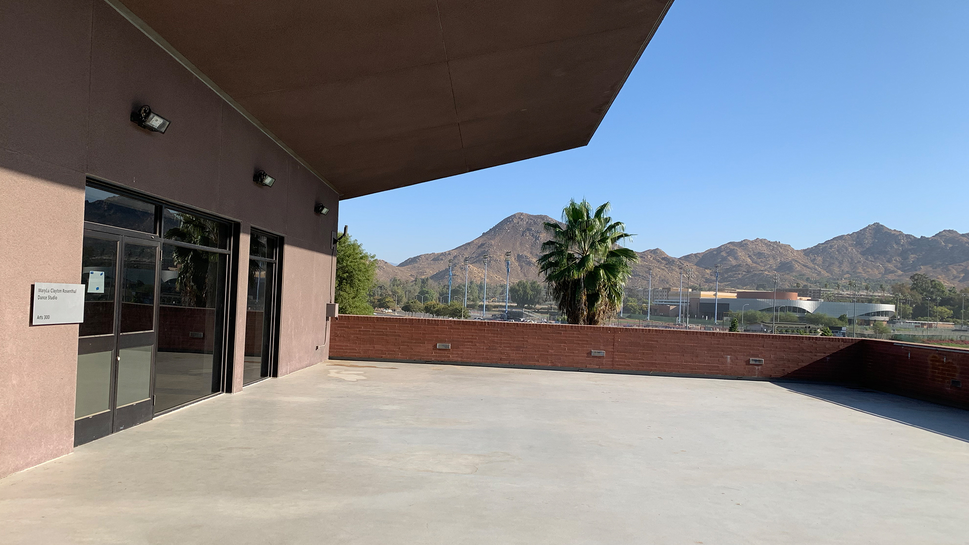 The Dance Patio, located on the third level of the Arts Building, is the outdoor extension of Arts 300. It is primarily used for lectures, performances, and receptions, and has stunning views of the campus.