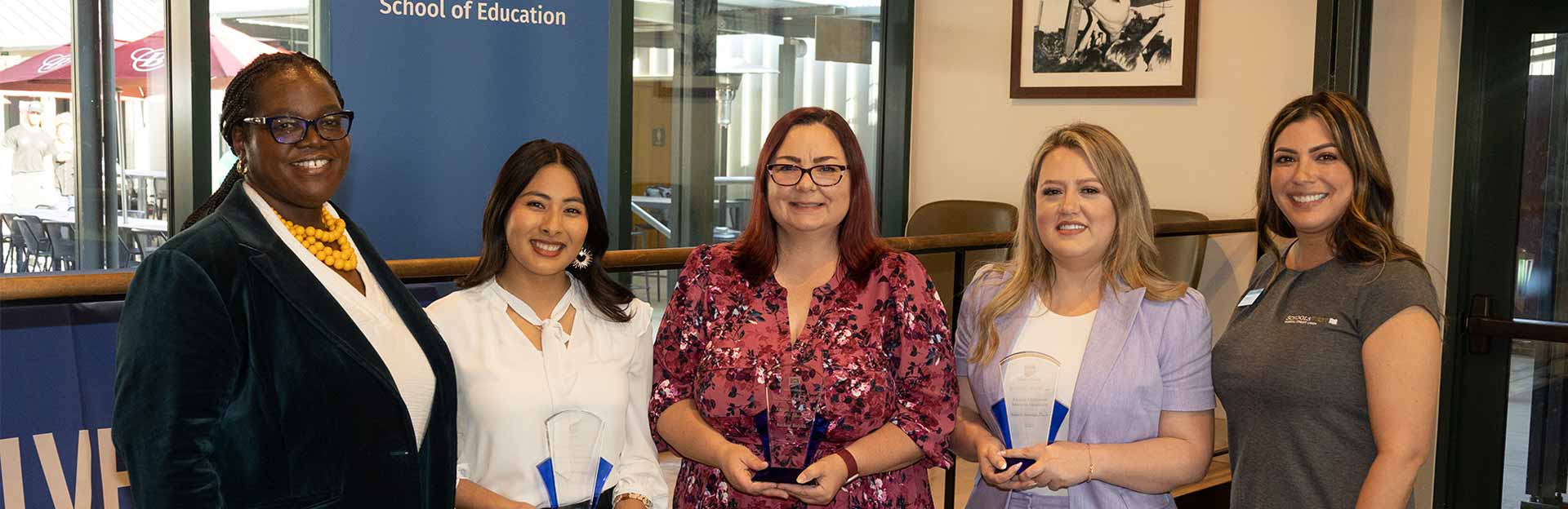 Each year the UCR School of Education recognizes outstanding alumni who, in alignment with the SOE mission, are committed to advancing equitable educational systems and practices. Awardees include a teacher credential alumni on faculty at a K-12 school (elementary school, middle school, high school), a graduate program alumni (MA or doctoral degree recipient), and an alumni who works in school administration/leadership. Awardees are selected by Dean Joi A. Spencer in consultation with a committee of SOE faculty and community members.