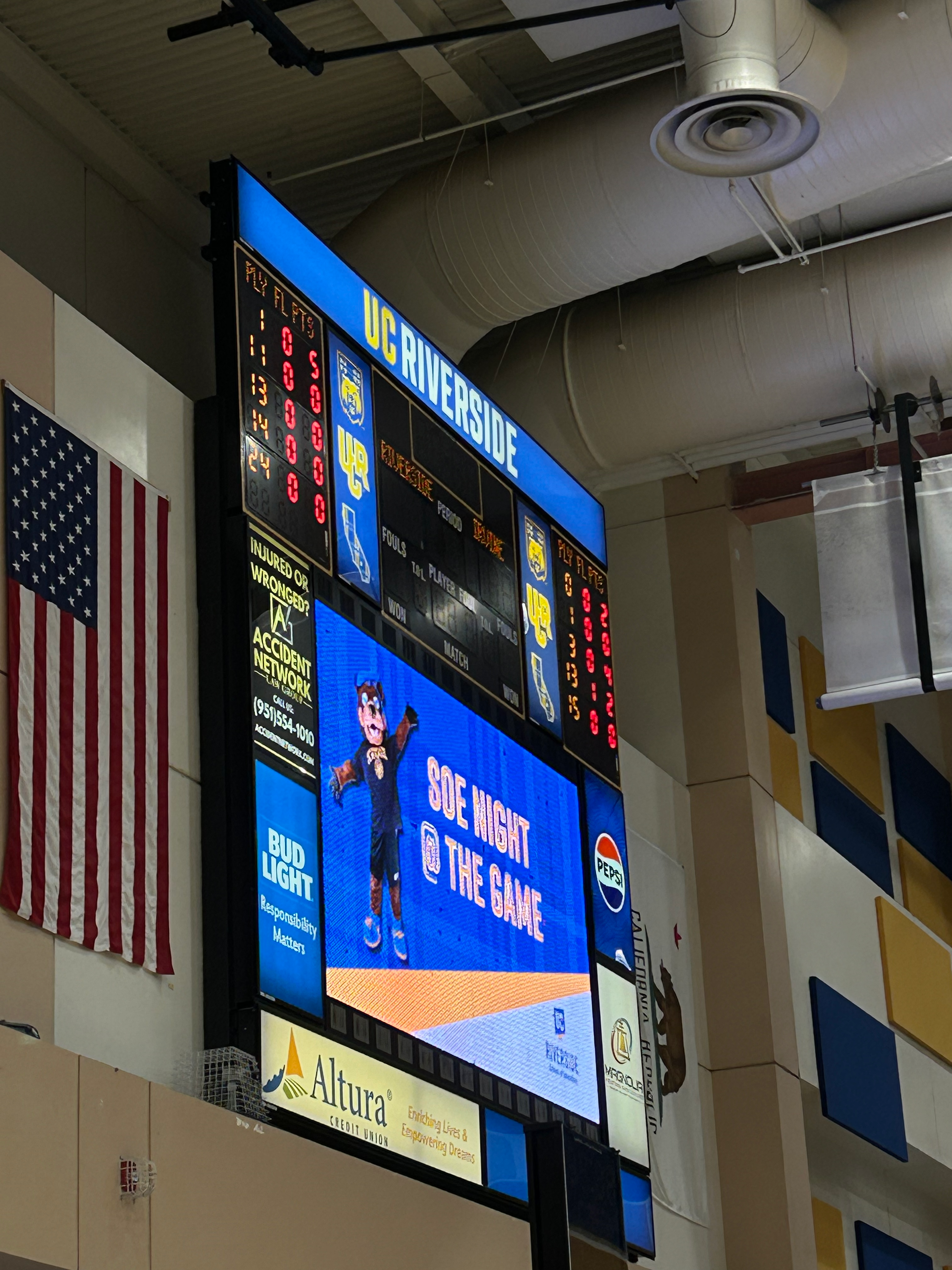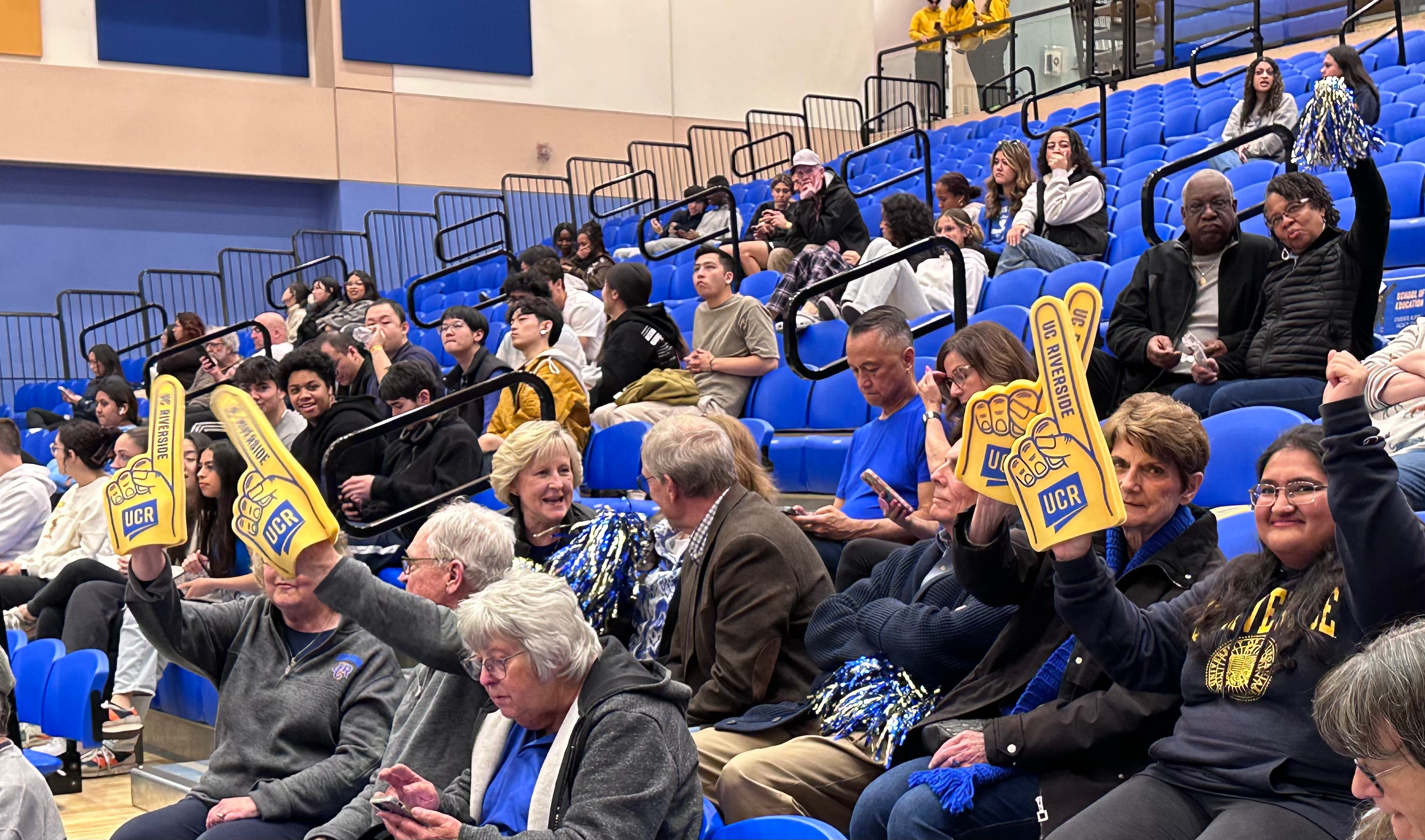 Members of the SOE Dean's Circle joined the SOE community including Dean Spencer, alumni, faculty, staff, and students at the UCR vs UCI men's basketball game on February 10th, 2024.