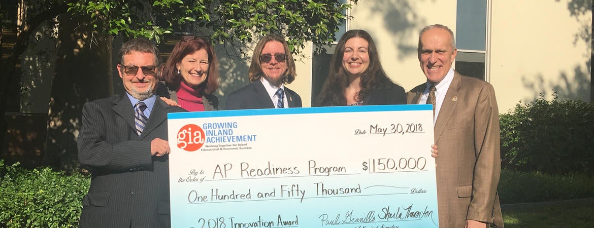 Beginning in fall 2018, AP Readiness will grow in scale to also incorporate students and teachers from the districts within neighboring San Bernardino County. The program’s expansion comes courtesy of a two-year Innovation Award presented to UCR in May by the bicounty collaborative Growing Inland Achievement.