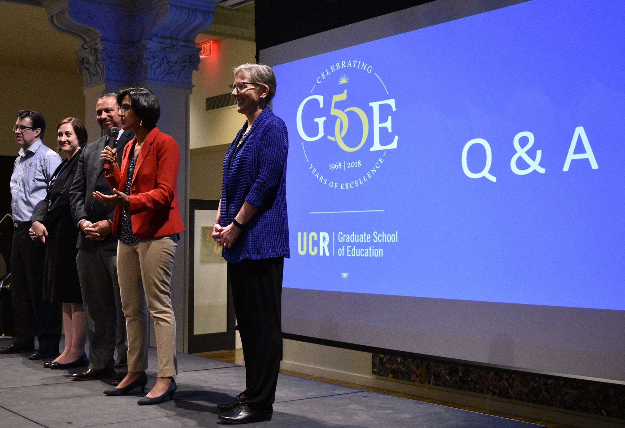 Provost and Executive Vice Chancellor Cynthia K. Larive reflected on the past 50 years of GSOE, highlighting the school’s key milestones: The school first began in 1958 as a teacher education program within the College of Letters and Sciences. In 1967, the master’s program in education was approved, and one year later, in 1968, the school formally became the School of Education, separating from the College of Letters and Sciences. GSOE’s Ph.D. in education was approved in 1970, and in 2000, the School of Education was renamed the Graduate School of Education.