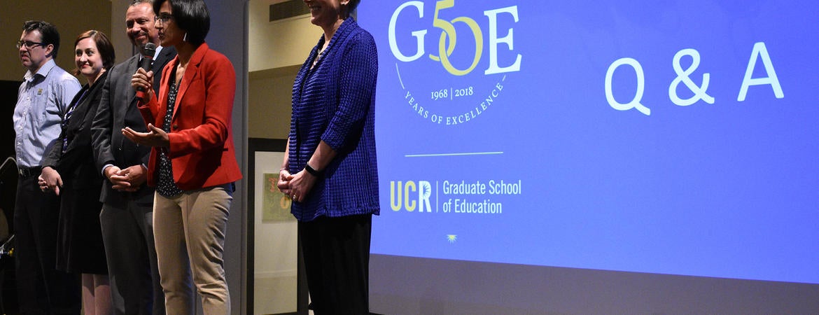 On April 11, UCR faculty, students, alumni, staff, and friends gathered at the UCR Barbara & Art Culver Center of the Arts to celebrate the 50th anniversary of the Graduate School of Education. Following a reception, guests were treated to a series of “Ed Talks,” short, engaging talks from current faculty engaged in research areas of neuroscience, the history of education, equity and access, and STEM.