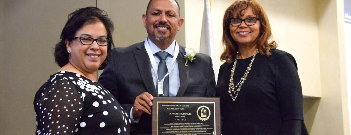 Louie F. Rodríguez, interim dean of UCR’s Graduate School of Education, was inducted into San Bernardino Valley College’s Alumni Hall of Fame at their official ceremony on Friday, November 8. The San Bernardino Valley College Alumni Hall of Fame was established by the SBVC Alumni Association in 1989, and honors former students whose lives are exemplary for both their career accomplishments and their contribution to the well-being of others. Inductees are nominated by the community and chosen through a selection process carried out by the Alumni Association Hall of Fame Committee.