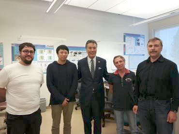 On March 11th, US Congressman Mark Takano (41st district) visited Professor Khitun's Device Discovery Lab and had a thirty minute discussion about the ongoing research on magnonic holographic imaging of magnetic nanostructures. This work is supported by the SHINES center and director Professor Jing Shi.