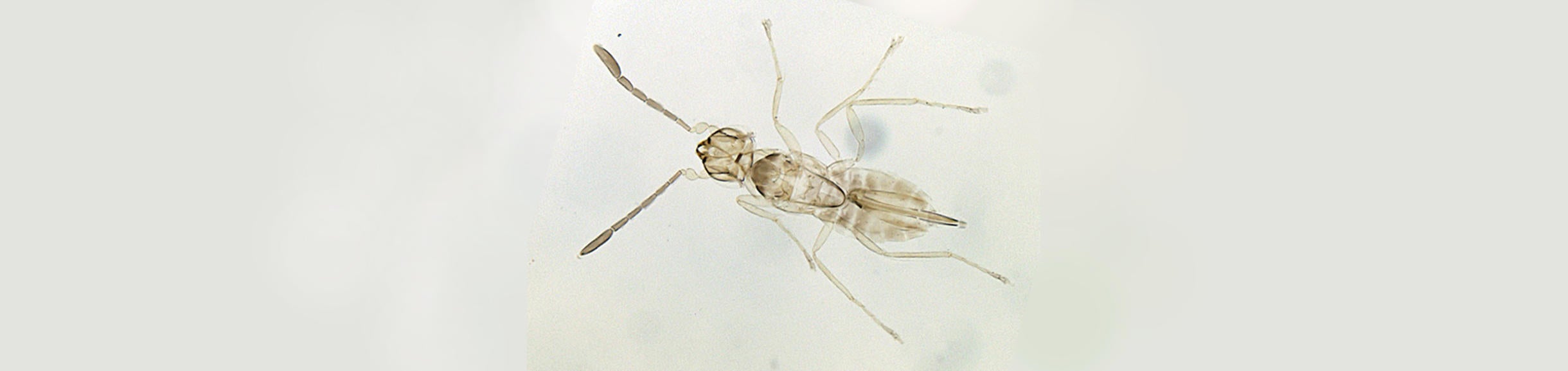 Specimens should be mounted so that when finished, the specimen is oriented horizontally along the long axis, dorsal surface up, or perhaps even at a slight angle to the horizontal axis of the point tip (30° to 40°) as above. None of the head, dorsal surface of the mesosoma (thorax), abdomen or wings should ever be touched by the glue.