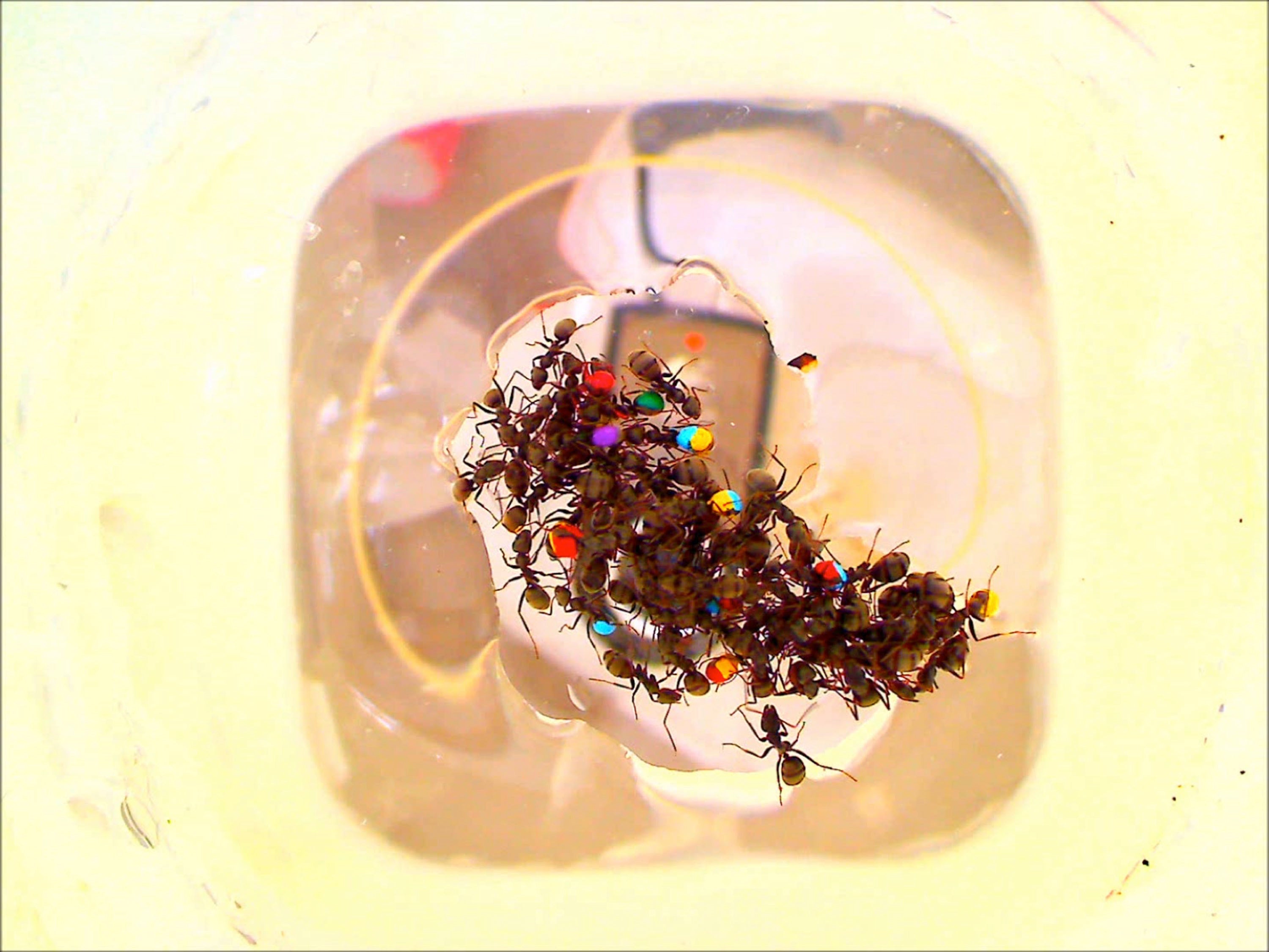 In a lab, they subjected groups of Formica selysi workers to two consecutive floods and monitored the position of individuals in rafts. Workers showed specialization in their positions when rafting, with the same individuals consistently occupying the top, middle, base or side position in the raft.