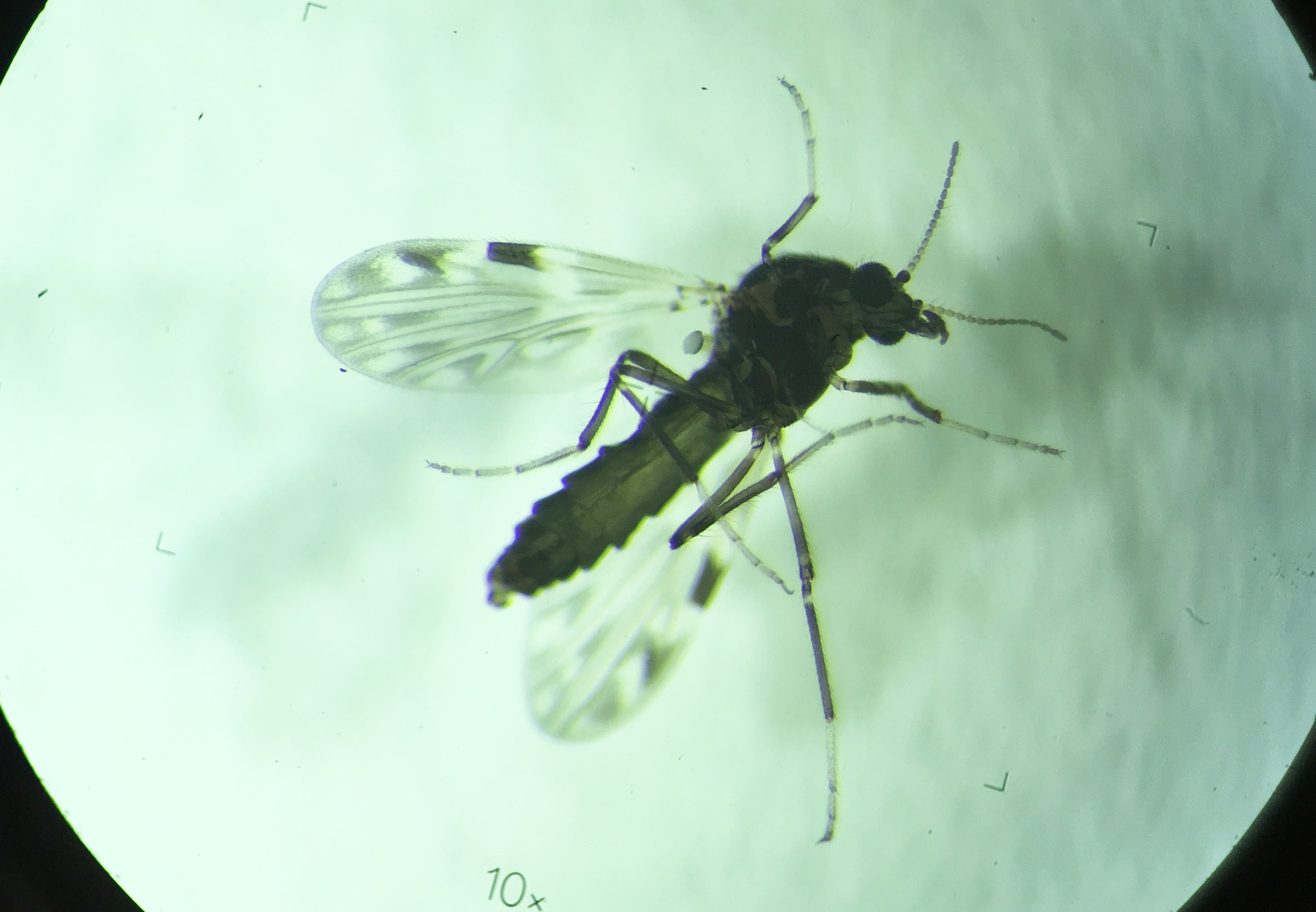 The Culicoides biting midge, a tiny fly in the order Diptera, transmits several important animal viruses. One of the most significant is the bluetongue virus (BTV), which causes bluetongue disease in cattle, sheep, deer and other ruminants. A new study gets closer to answering how biting midges such as Culicoides sonorensis (shown here) maintain transmission of bluetongue virus to cattle in temperate regions year after year, even though individual midges are unlikely to survive entire winters. https://entomologytoday.org/2023/06/06/biting-midges-overwintering-bluetongue-virus/