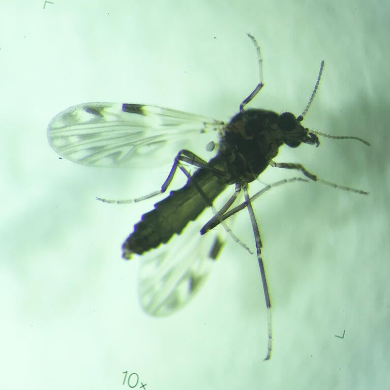 The Culicoides biting midge, a tiny fly in the order Diptera, transmits several important animal viruses. One of the most significant is the bluetongue virus (BTV), which causes bluetongue disease in cattle, sheep, deer and other ruminants. A new study gets closer to answering how biting midges such as Culicoides sonorensis (shown here) maintain transmission...