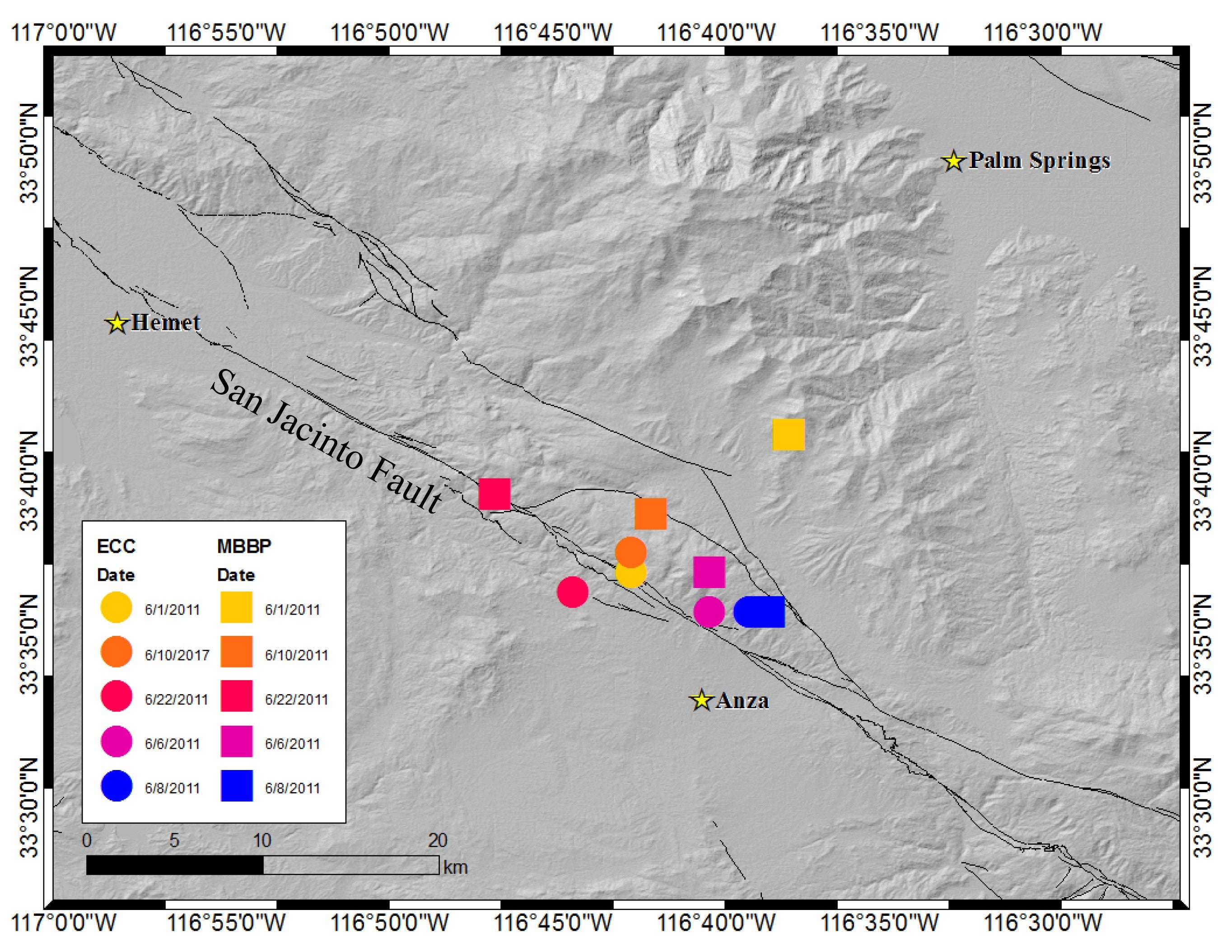 "Scientists at the University of California, Riverside have detected spontaneous tectonic tremor — a signature of slow earthquakes deep below the earth’s surface — in the Anza Gap region of the San Jacinto Fault. Tectonic tremors are believed to increase the likelihood of a moderate to large, damaging earthquake occurring close to the earth’s surface by altering the stress along the fault."