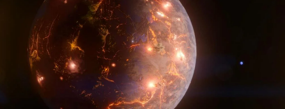 Imagine an Earth-sized planet that’s not at all Earth-like. Half this world is locked in permanent daytime, the other half in permanent night, and it’s carpeted with active volcanoes. Astronomers have discovered that planet.