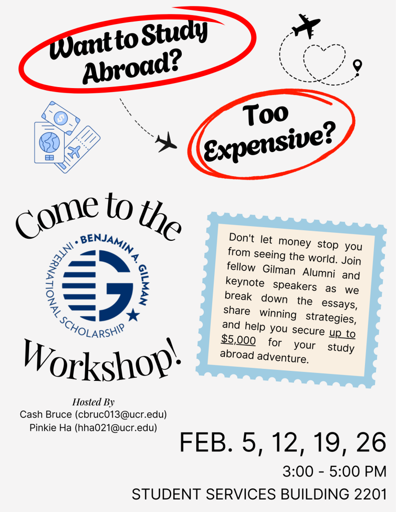 Attend these four scholarship-writing workshops led by Gilman Scholarship winners Cash Bruce and Hong "Pinkie" Ha: