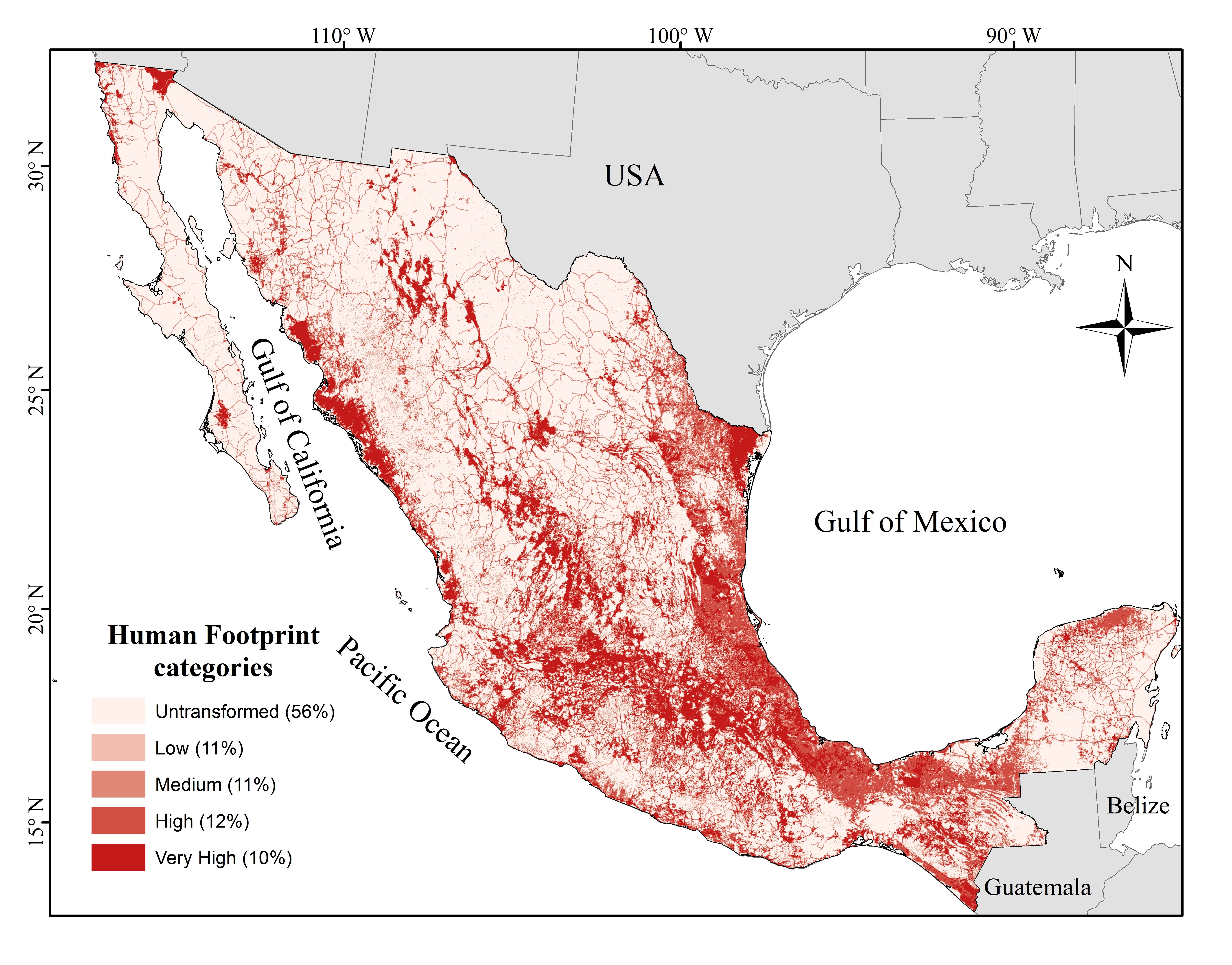 Description: Map of the human footprint for all Mexico, developed as described in the reference cited below