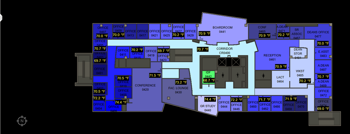 The School of Business’s digital building controls by Sunbelt Controls are coupled with SkySpark analytic software, which proactively aims to enhance building system performance, reduce operating costs, and improve indoor air quality and comfort.