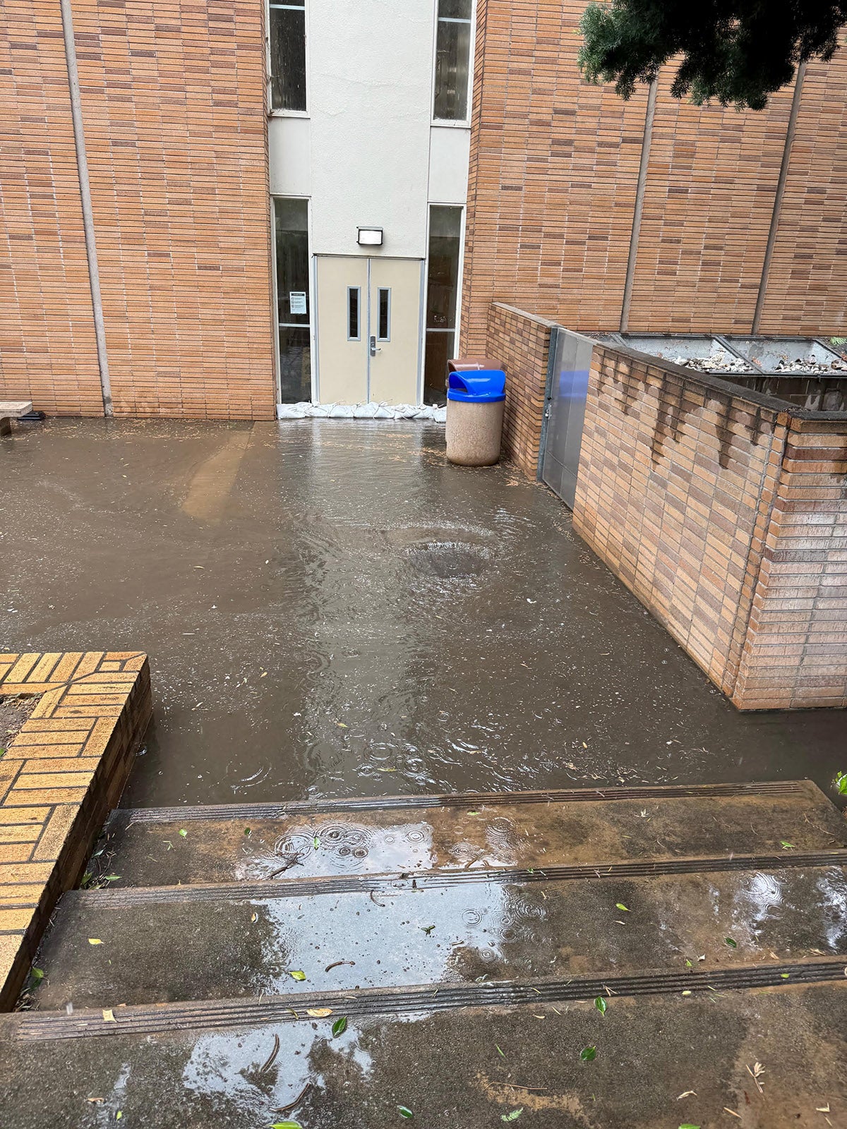 Starting early in October, the Landscape Services team begins clearing campus roofs of debris, aiming to collect over 200 bags before heavy rains arrive. To prevent flooding, they deploy approximately 800 sandbags each year. Tree trimming is also scheduled for the winter break, primarily in campus housing and parking lots, to minimize disruptions to the campus community.