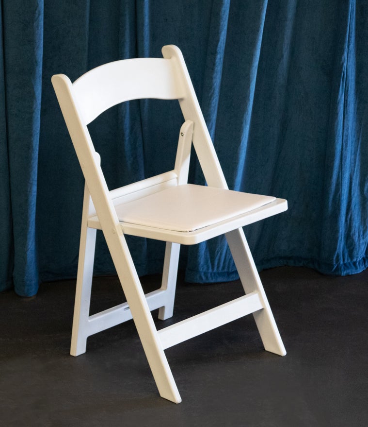 Our folding chairs are white in color with a padded seat.