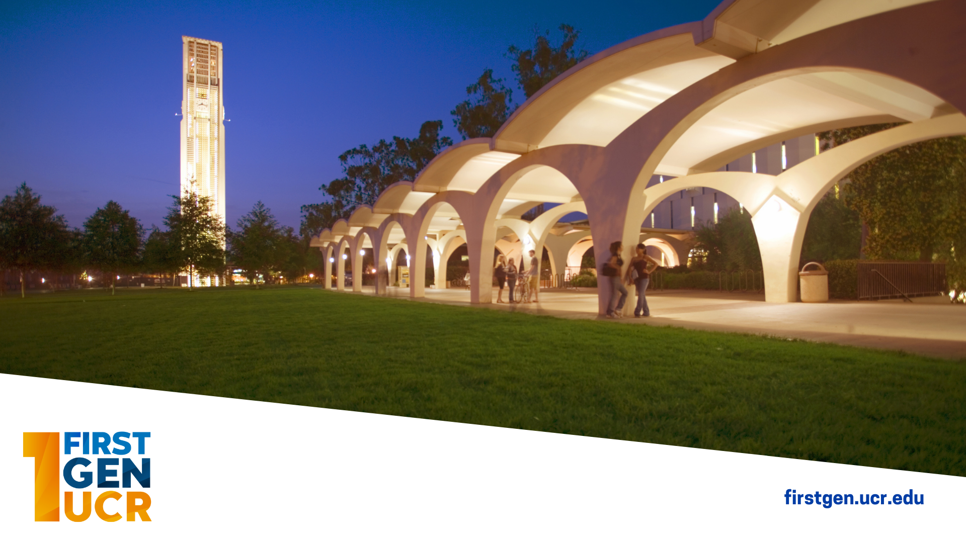 Our campus first generation initiative aims to create community, and support social and professional development. Quarterly we will host activities, workshops and events in collaboration with other campus departments. We promote campus involvement and a focus on the student success and retention of first gen students here at UCR. Let us be a resource for you as you navigate campus and so much more. Remember you belong here and being a first-generation college is an accomplishment that should be celebrated!