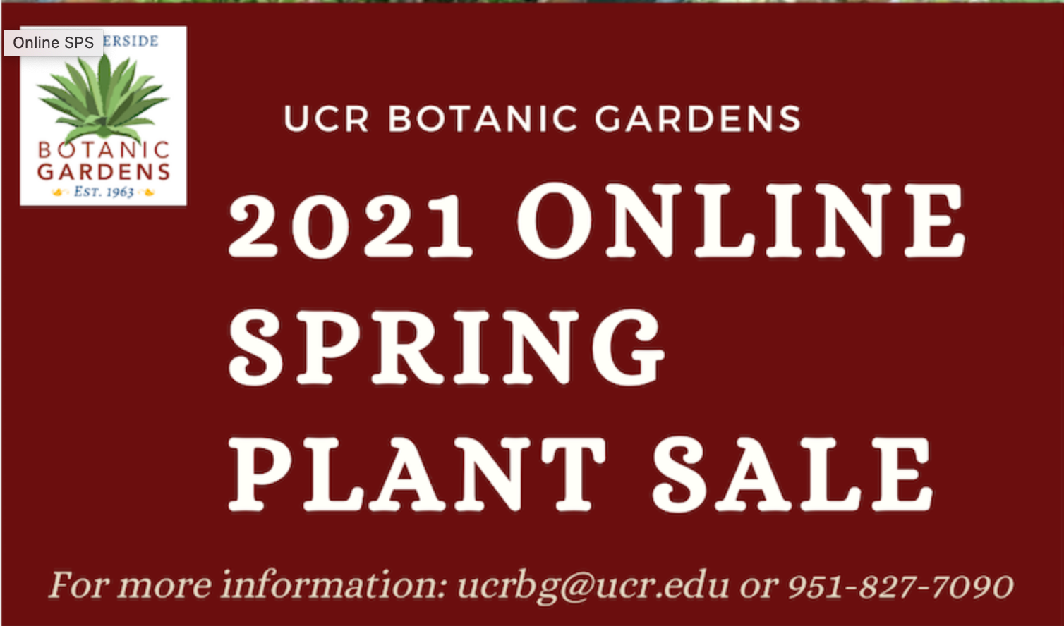 Friends members will enjoy a 10% discount on all plants sold online, as well as many other benefits described under “Become a Member.” Join or renew your Friends membership before April 3, 2021 at https://gardens.ucr.edu/friends to receive your discount. The plant list is available at https://gardens.ucr.edu/events/plant-sales and will include hundreds of different species including house and patio plants, shrubs, herbaceous plants, trees, vines, cacti, succulents, and California native plants.