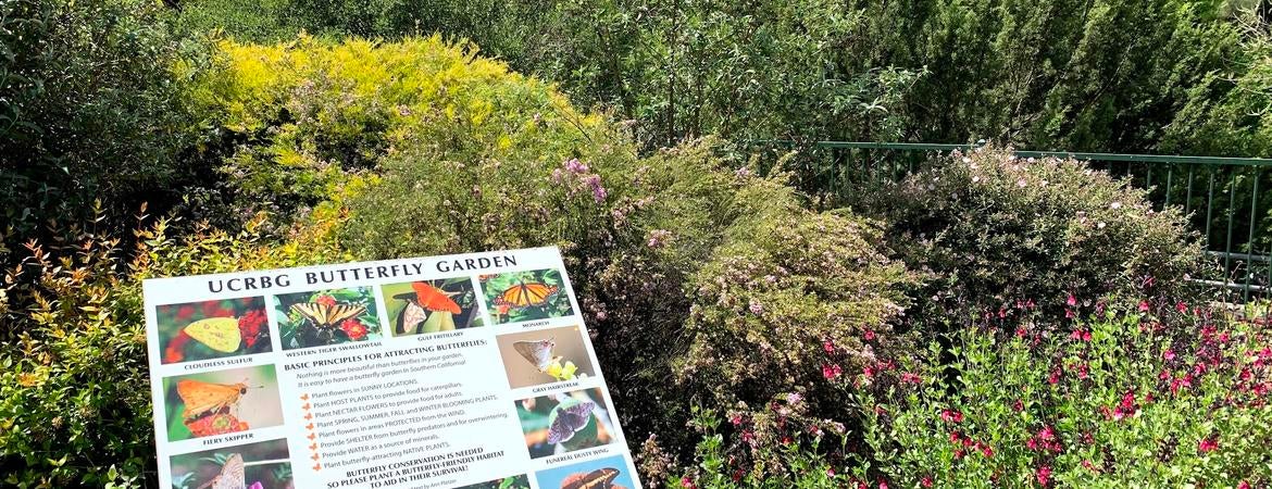 Visit the UCR Botanic Gardens' Butterfly Garden on the 1st & 3rd Sunday of the month, March-November, 9:00 am-12:00 pm, to learn about Gardening for Butterflies!