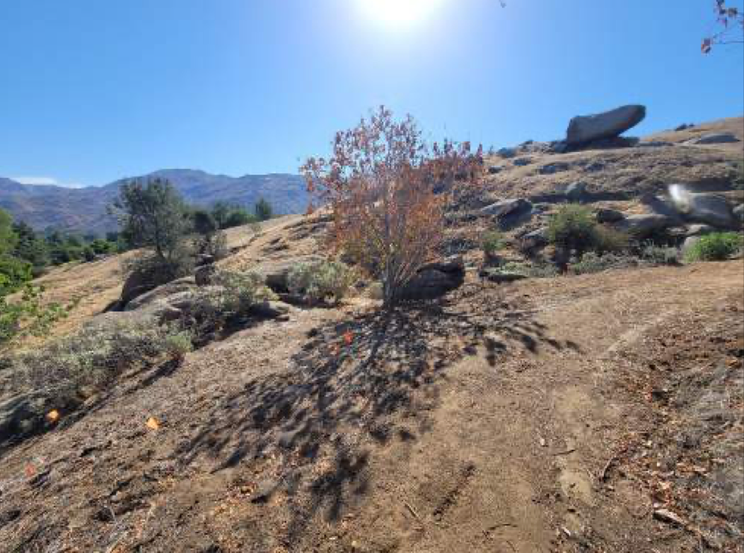You may have noticed from the “In the Works” section, that we are working on a Native Bee Garden, which was inspired and funded by generous donations from the family of the late Dr. Martin Barnes, Emeritus Professor of Entomology. If you plan to make several visits throughout the rest of the year, I recommend you look at the work we will be doing on this installation. As of this writing we have selected the plants that will provide nectar and pollen to the native bees, we have removed weeds and some shrubs to make room for the design, and we have installed a memorial bench to rest and enjoy the view. Unlike the other themed gardens that are clustered together by our main paved road, this one is set in the interior among the rocks and hilly terrain. We wanted this garden to be nestled among other native plants, which is why we selected the northeast area of the California Sierra Foothills collection, by trail marker 23 to be more precise. The area is teeming with natives like Rhus, Aesculus, Eriogonum, Berberis, and Encelia species. We are going to introduce other natives that will provide nectar and pollen sources throughout the year. We also have plans to introduce a wildflower forage ground cover, which is an important component to any native bee garden. But before all this happens, we are going to perform major work on irrigation to ensure that this new installation thrives. You may want to take several trips and see our progress or wait until we’re closer to the end of the year to see the finished garden.