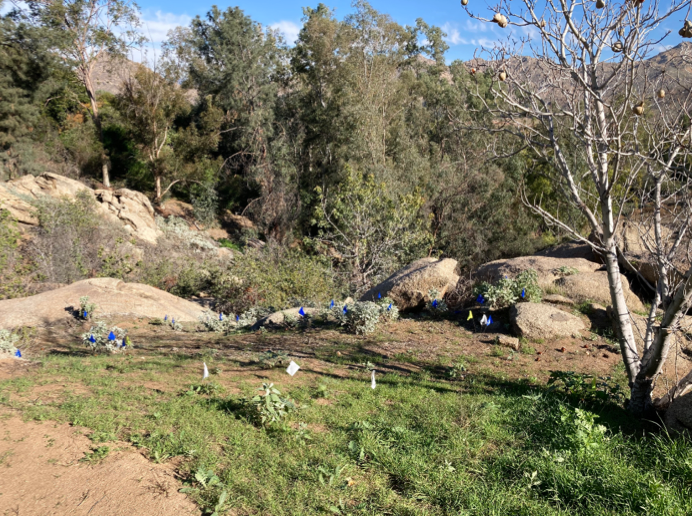In the Sierra Foothills area there are a few things to keep an eye out for as you hike the winding trails. I mentioned the Native Bee Garden in the last issue and that installation is still in progress. We are going slowly, but with good reason. We wanted to focus on practices that would help promote plant vigor while reducing our labor input. The Bee Garden will be the first garden to have hydrozones. Grouping plants by similar water requirements will help us conserve water and provide the various specimens with an ideal water regimen. Including all the natives in the new garden, both existing and newly planted, we will need seven zones. To enhance water conservation most of the plants will be irrigated with drip emitters, and a few zones will run on bubblers and rotary nozzles.