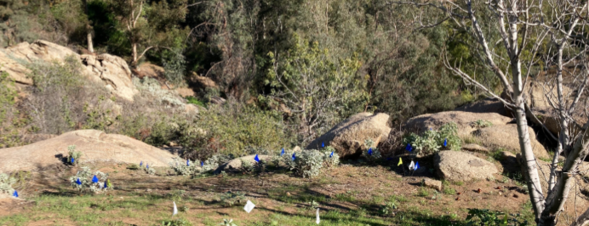 Most of my recommendations over the years have been to look at a specimen up close. As a final recommendation, while the weather is nice, I suggest taking a walk on our perimeter trail, which circles the highest area of the Gardens. I usually start on the Coastal Sage Scrub side and stop throughout the hike to take in the view from different vantage points. My favorite view on the perimeter trail is east of Balanced Rock. From there, I can see the different zones I mentioned, and I can also see some of the lower areas of the Gardens and a good amount of the city and campus. Cool, clear mornings provide a spectacular view if you take the time for this hike.