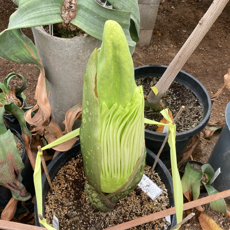 The UCR Botanic Gardens has a BIG botanical event happening this week—a once in a decade flowering of a huge and rare tropical plant, the corpse plant, Amorphophallus titanum. It produces the worlds biggest inflorescence (flowering stalk) and is renowned. Visit the UCR Botanic Gardens Greenhouse to witness firsthand this rare phenomenon. July 22nd update...