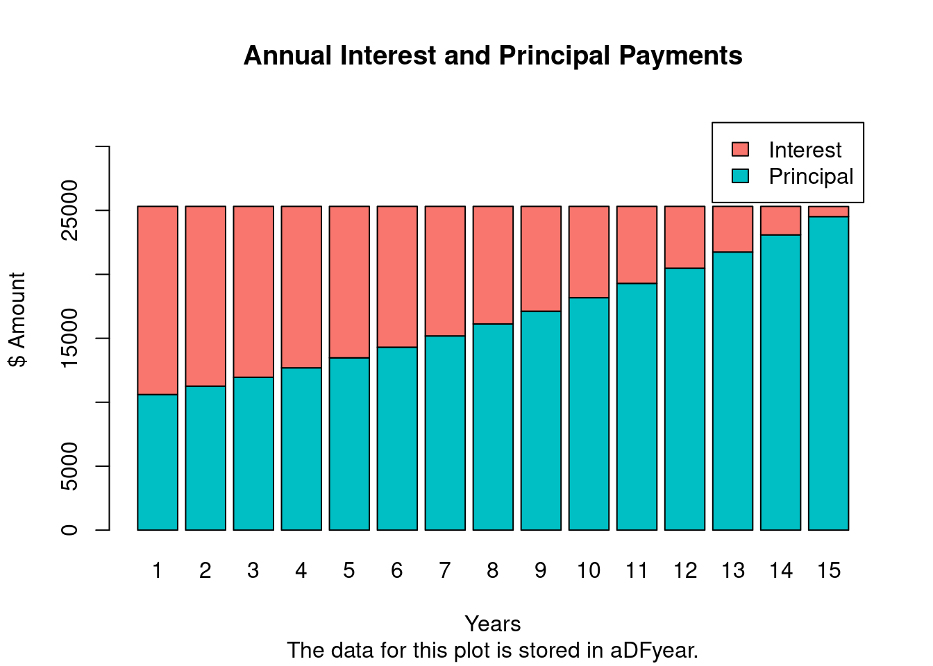 The amortization data for each of the 15 years are stored in "m$aDFyear".