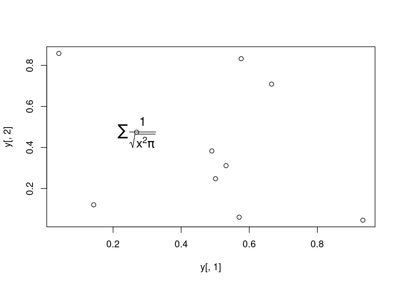 plot(y[,1], y[,2], type="n", main="Plot of Labels")text(y[,1], y[,2], rownames(y))