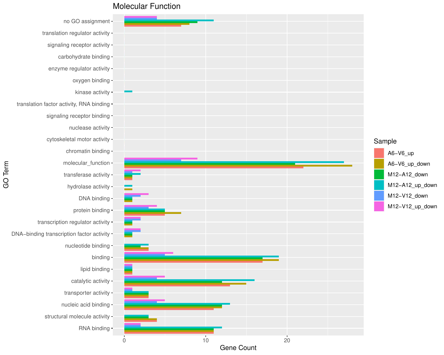goBarplot(gos, gocat="MF")