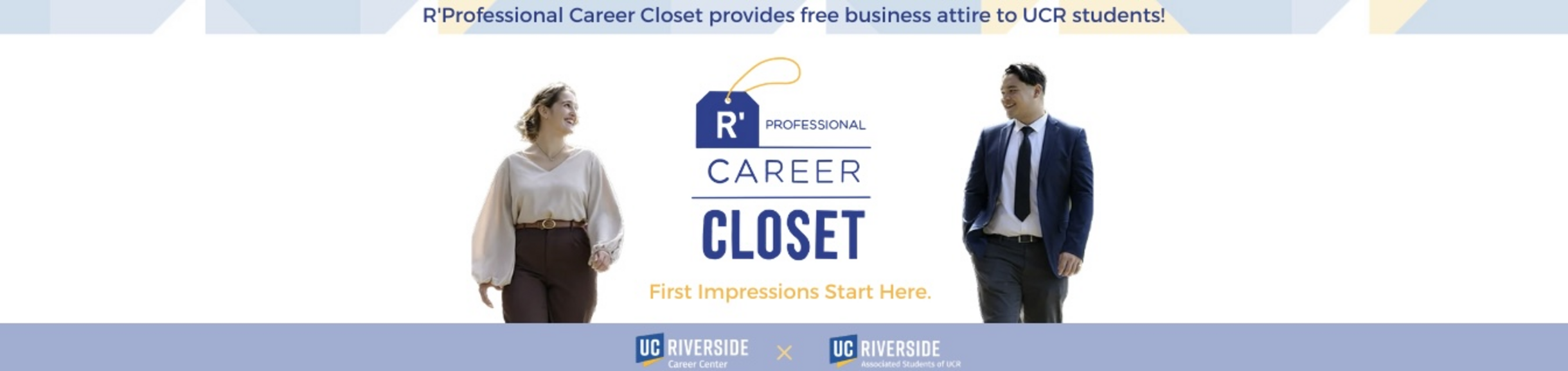 - Current UCR students can come into the R'Professional Career Closet located in the Bear's Den (HUB 105) during opening hours to choose up to three professional clothing items (or one outfit) per quarter.