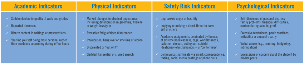 Pictured: Table displaying various indicators that your students may need help.