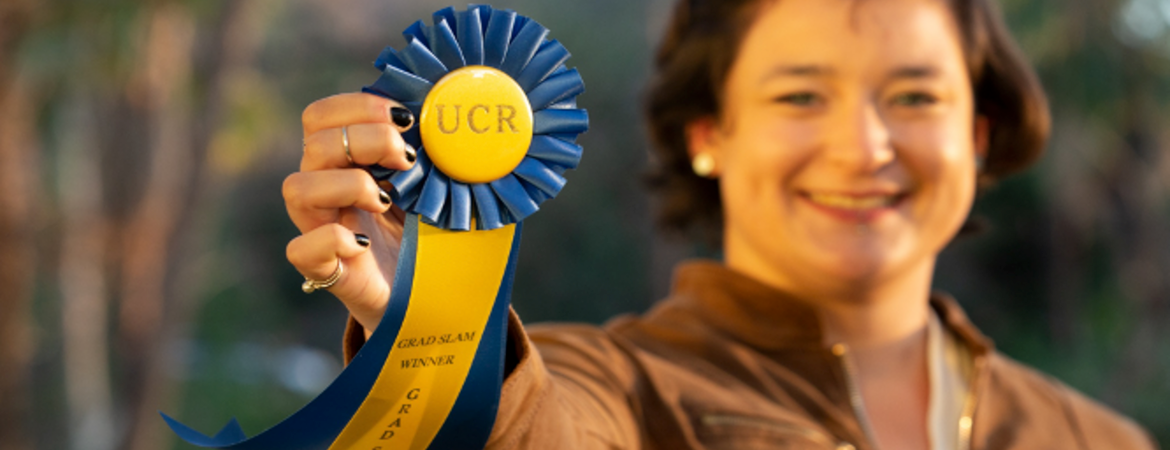 Can’t get enough? Don't worry - the excitement continues! Our UCR Grad Slam winner will ultimately compete against the Grad Slam winners from the other nine UC campuses for the grand prize at the UC Office of the President's Grad Slam Final Competition. The winner will take home $7000!