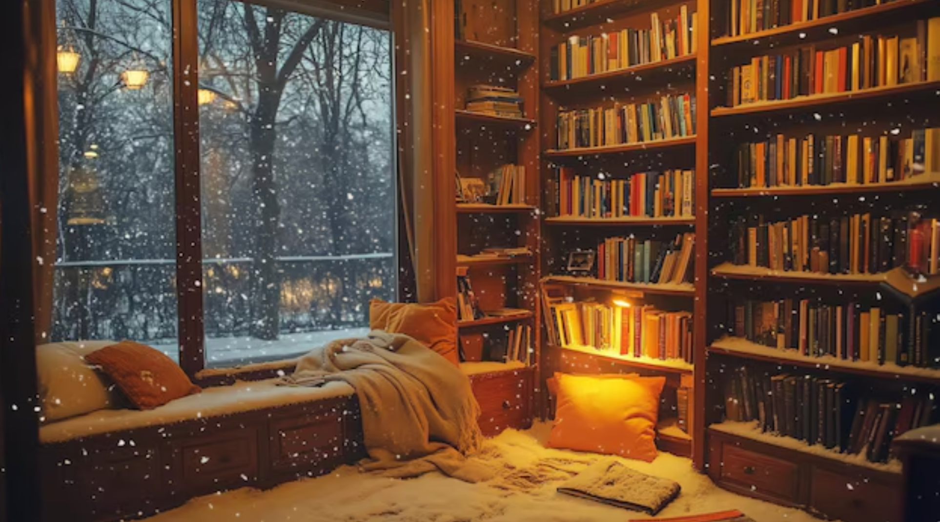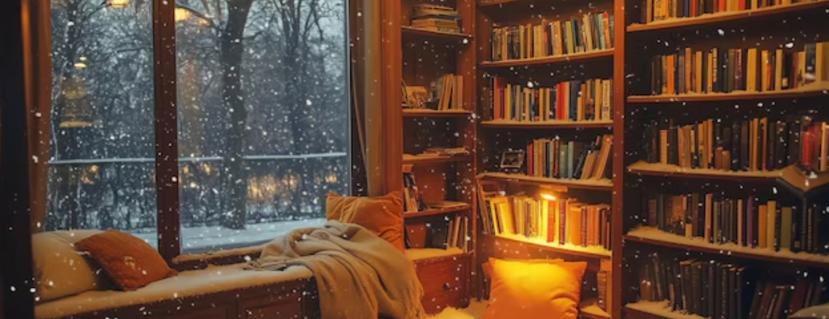 [Image Description: An animation of a woman reading under a blanket, drinking a warm beverage. She has a cozy cat on her lap.]