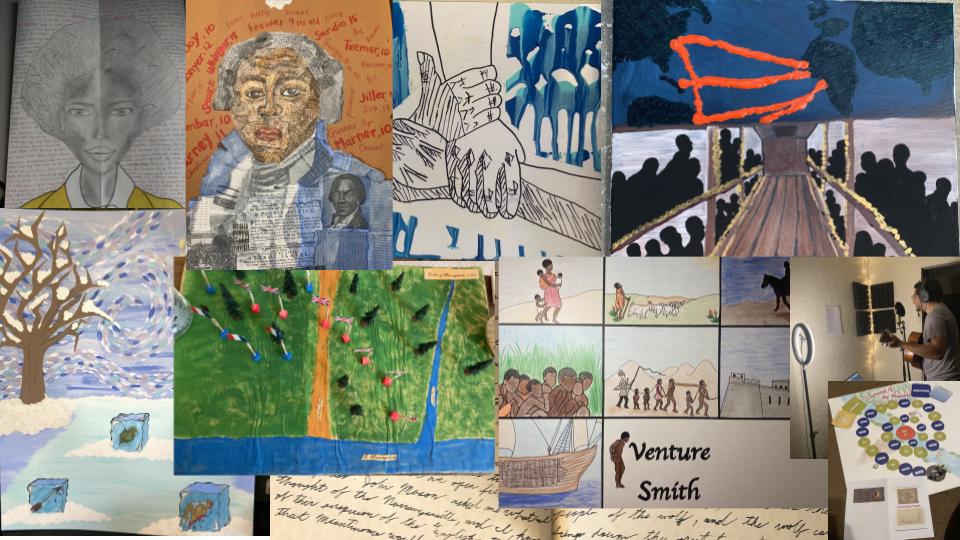 HIST 110A: Colonial North America is a course that surveys North American history from the period of before European colonization through the American Revolution. The course covered many different peoples, spaces, and events. To encourage exploration of the Early American past, the final project pushed the students to think creatively. They had to design, develop, and present an original project based on both primary and secondary sources. The results were nothing short of fantastic. Students created poems, songs, board games, costumes, household items, meals, paintings... and so much more. Here is a sample of their creative efforts.